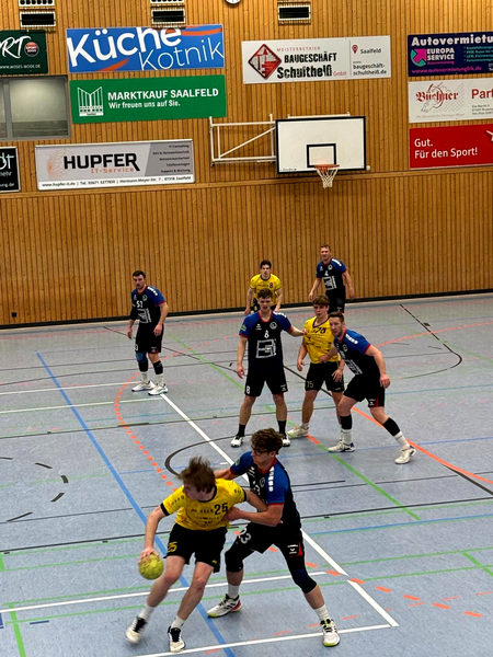 Mit einer überzeugenden Leistung hat die HSG Saalfeld/Könitz am Samstagabend einen klaren 47:33-Heimsieg gegen den Nordhäuser SV eingefahren. Besonders im Angriff präsentierten sich die Gastgeber deutlich treffsicherer und geschlossener als noch im letzten Auswärtsspiel in Großschwabhausen. Bereits vor dem Anpfiff sorgte eine besondere Aktion für positive Energie im Team: Die 1. Frauenmannschaft der HSG hatte in der Kabine eine Motivationsüberraschung vorbereitet. Diese zeigte augenscheinlich Wirkung, denn von Beginn an trat die Mannschaft konzentriert, geschlossen und mit viel Spielfreude auf. Die Partie begann zunächst ausgeglichen. Nordhausen hielt in der Anfangsphase dagegen und blieb bis Mitte der ersten Halbzeit in Schlagdistanz. Doch die HSG fand immer besser ins Spiel, erhöhte das Tempo und nutzte ihre Chancen konsequent. Über eine starke Angriffsleistung setzte sich das Team bis zur Pause auf 22:19 ab. Nach dem Seitenwechsel übernahm die HSG endgültig die Kontrolle über das Spiel. Angeführt von einem treffsicheren Felix Möller, der insgesamt 14 Tore, darunter sieben sicher verwandelte Siebenmeter erzielte, bauten die Gastgeber den Vorsprung kontinuierlich aus. Auch Nico Geßler (5 Tore), Marcel Gastrop (6), Florian Geßler (6) sowie Christoph Schuchardt (4) trugen maßgeblich zur starken Offensivleistung bei. Mit zunehmender Spielzeit machte sich die verbesserte mannschaftliche Geschlossenheit bemerkbar. Die HSG spielte ihre Angriffe geduldig aus, nutzte Lücken konsequent und ließ den Gästen aus Nordhausen immer weniger Möglichkeiten, das Spiel noch einmal spannend zu gestalten. Spätestens Mitte der zweiten Halbzeit war die Partie beim Stand von 34:24 vorentschieden. Am Ende stand ein verdienter und auch in der Höhe gerechtfertigter 47:33-Heimsieg. Mit dieser starken Leistung bleibt die HSG Saalfeld/Könitz weiterhin in Schlagdistanz zum Spitzentrio der Landesliga.